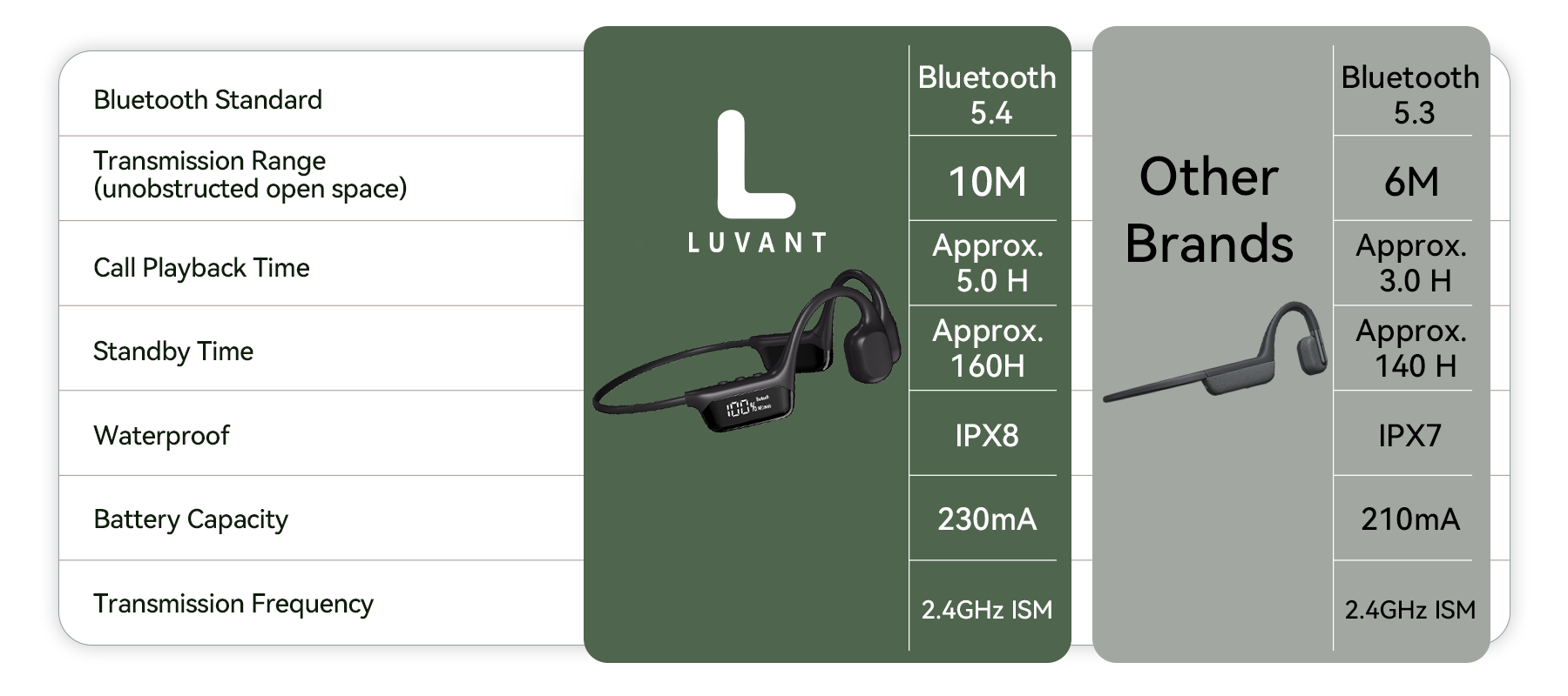 Ever felt discomfort from heavy or bulky headphones, ruining your long listening sessions? Luvant Bone Conduction Headphones focus on an ultra-lightweight design, making them virtually imperceptible and truly freeing your ears! We understand that wearing comfort is crucial for the listening experience. Through innovative materials and clever engineering, these headphones achieve an astonishingly featherlight design.
